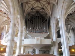 | Umbauten: | 2001/2002 – Renovierung durch die Orgelbauwerkstatt Richard Rensch, dabei Umintonation vor allem der 8'-Register und Austausch von 12 Stimmen von 1965 zugunsten neuer Streicher und französich-romantischer Zungenregister (s. Disposition). |