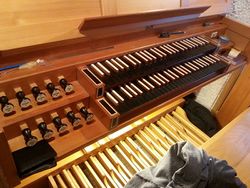 | Spielhilfen, Koppeln: | II/I, I/P, II/P, Tremulant |