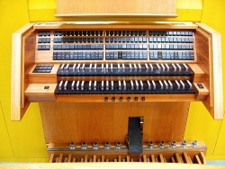 | Spielhilfen, Koppeln: | II/I, I/P, II/P, II/P (Super), 3 freie Kombinationen, Handregister an in den Freien Kombinationen, 1 freie Pedalkombination, Tutti, Zungeneinzelabsteller, Absteller für Hw-Gedackt 16', Nullsteller |