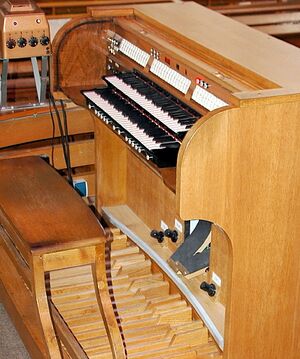 Portunalflöte 8' Salicional 8' Fernflöte 8' [1] Principal 4' Zartflöte 4' Nachthorn 2' Spitzquinte 11/3' Scharff 5f Oboe 8' |