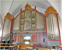 Umbauten: 1960er Jahre Neobarockisierung; 2013 Einbau einer historischen englischen Unda maris 8' ins Oberwerk anstelle einer neobarocken Zimbel durch Burkhard Klimke