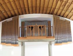 | Geschichte der Orgel: | Die Orgel wurde 2017 durch die heutige Maier-Orgel ersetzt. Ihren letzten Gottesdienst spielte sie am Faschingsdienstag 2017, danach wurde sie abgebaut und die Pfeifen versteigert. |