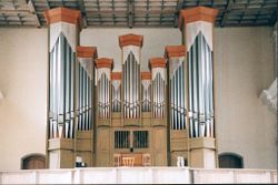 | Spielhilfen, Koppeln: | Normalkoppeln: II/I, III/I, III/II, I/Ped, II/Ped, III/Ped; Setzeranlage (2015), Celesta (2021), Zimbelstern |