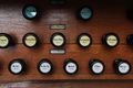 1990 restauriert Gerald Woehl die Orgel, wobei er diese Erweiterung beibehält. Nach Bösken war Woehls Vater Organist an dieser Orgel. Das Register Boxhorn 32' ist nicht klingend. Nach einer Mitteilung des Pfarrers vom 01.03.2015 soll sich der Orgelbauer bei der Ausführung des Spielschranks um ein Register verzählt und deshalb einen überzähligen Registerzug angelegt haben. Dieser wurde - wie die fotografische Aufnahme zeigt - nachträglich mit der Bezeichnung Boxhorn 32' versehen. |