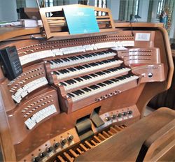 | Spielhilfen, Koppeln: | Koppeln II/I, III/I, IV/I, III/II, IV/II, IV/III, I/P, II/P, III/P, IV/P; 2 freie Kombinationen, Tutti, Crescendowalze, Zungeneinzelabsteller |