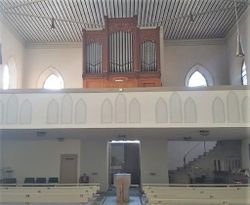 Hohlflöte 8' Gamba 8' Oktave 4' Rohrflöte 4' Nasat 22/3' Prinzipal 2' Mixtur 4f 11/3' Trompete 8' |