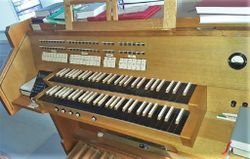 | Spielhilfen, Koppeln: | II/I, I/P, II/P, 2 freie Kombinationen, Tutti |