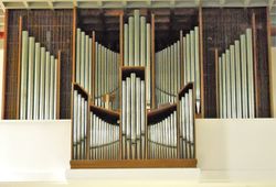 | Spielhilfen, Koppeln: | II/I, III/I, III/II, I/P, II/P, III/P, 2 freie Kombinationen, 1 freie Pedalkombination, Tutti, Crescendowalze, Zungeneinzelabsteller |