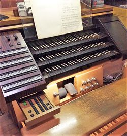 | Spielhilfen, Koppeln: | I/II, III/II, III/I, I/P, II/P, III/P, 1280 Setzerkombinationen, Piano, Mezzoforte, Forte, Tutti, Crescendowalze |